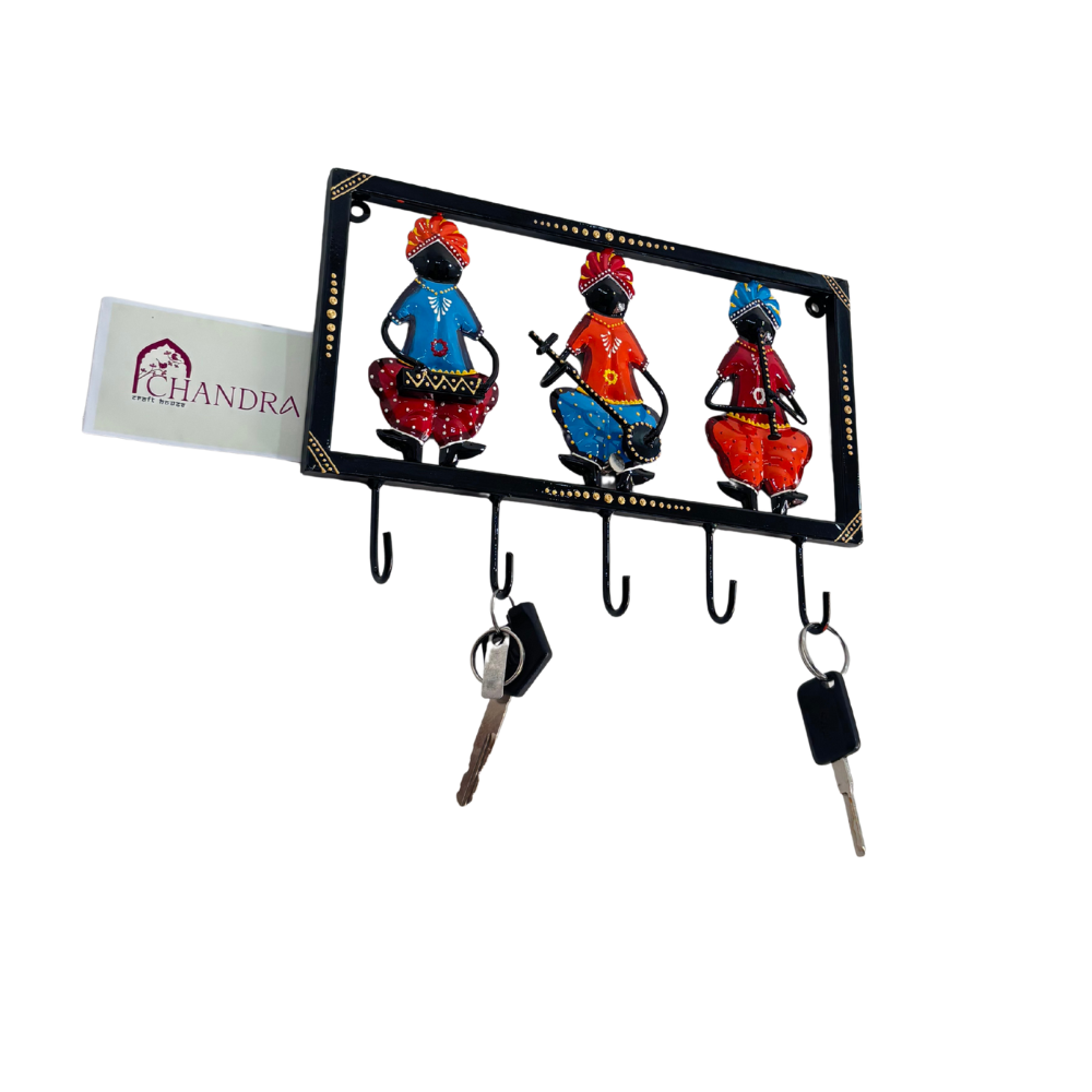 Add a touch of artistry to your home with the Iron Multicolor Sardar Musician Key Holder. Handcrafted in vibrant colors, this functional wall décor piece keeps your keys organized while showcasing traditional musician figurines. A perfect blend of utility and elegance for your entryway, gifting, or home décor.