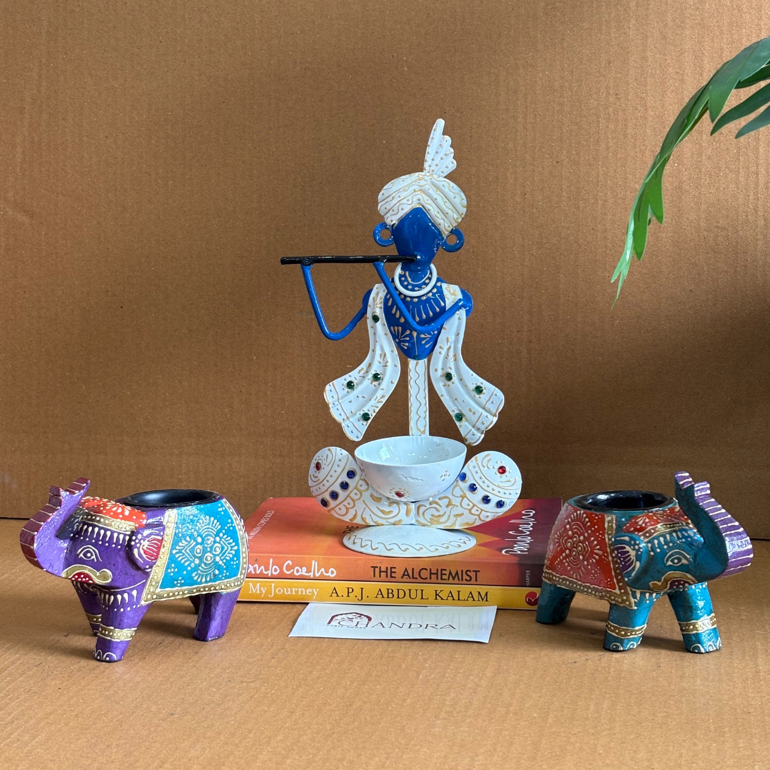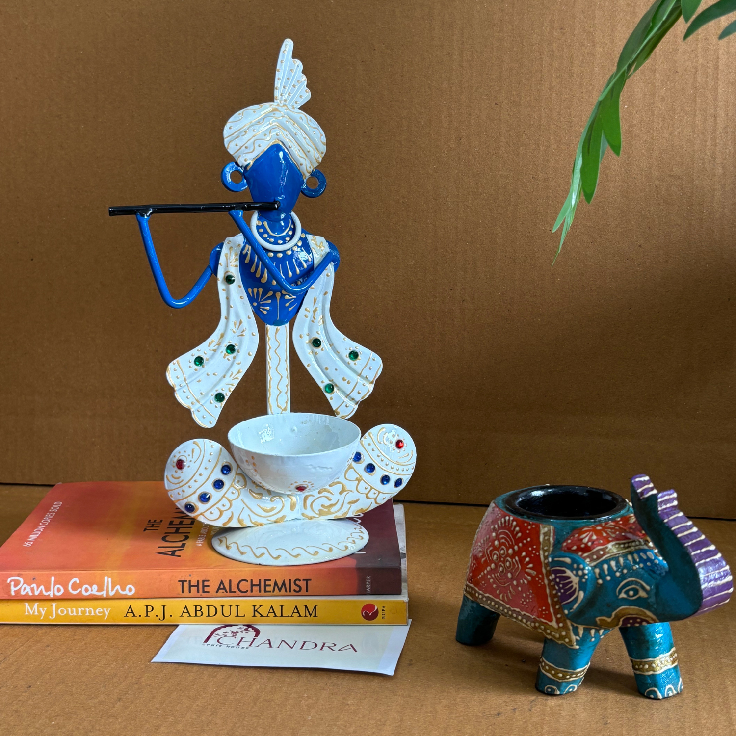 Brighten your celebrations with the White Krishna Candle Holder, a handcrafted piece that blends spiritual charm with elegant lighting. Perfect for Diwali décor, pooja ambience, and festive gifting, this candle holder adds warmth, positivity, and divine beauty to any space.